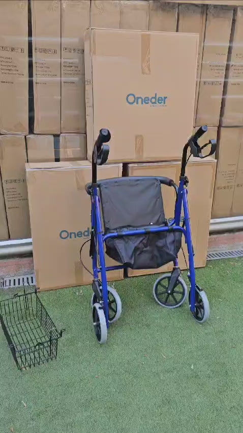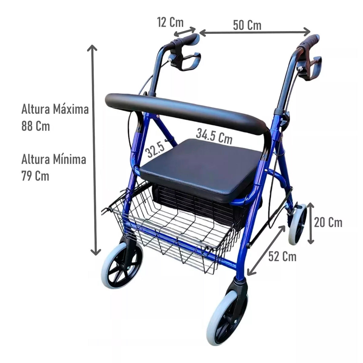 Andador Plegable 4 Ruedas Con Asiento Y Canasto, Este andador está equipado con 4 ruedas silenciosas tipo premium para desplazarse con tranquilidad e incluye frenos en las manillas y sistema de bloqueo, que en conjunto proporcionan mayor seguridad. Incluye un práctico canasto que permite llevar las pertenencias de manera práctica, sin inhabilitar las manos, lo que es ideal para los usuarios.