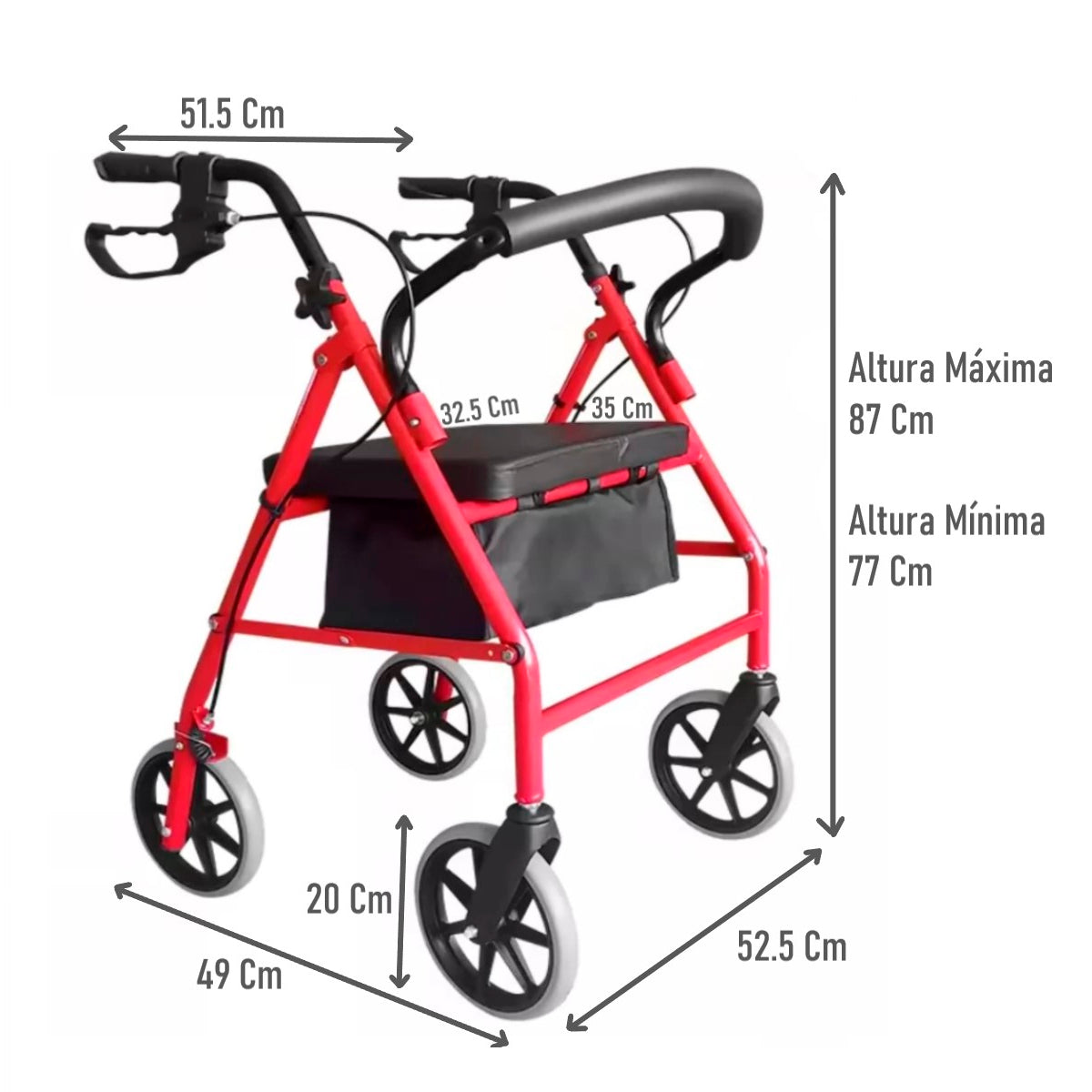Equipado con cuatro ruedas resistentes y un marco robusto, este andador te brinda estabilidad y seguridad en cada paso que das, incluso en superficies irregulares.