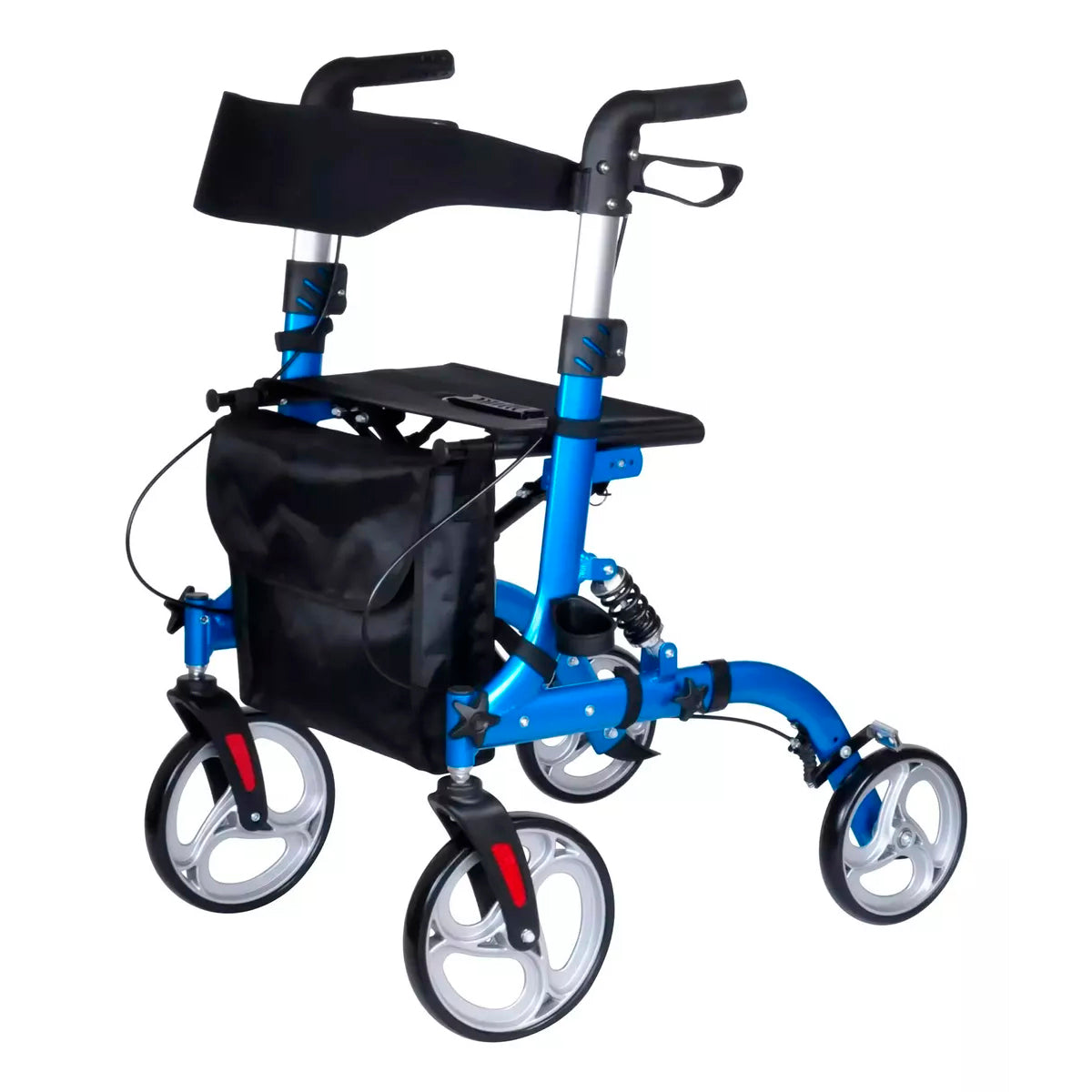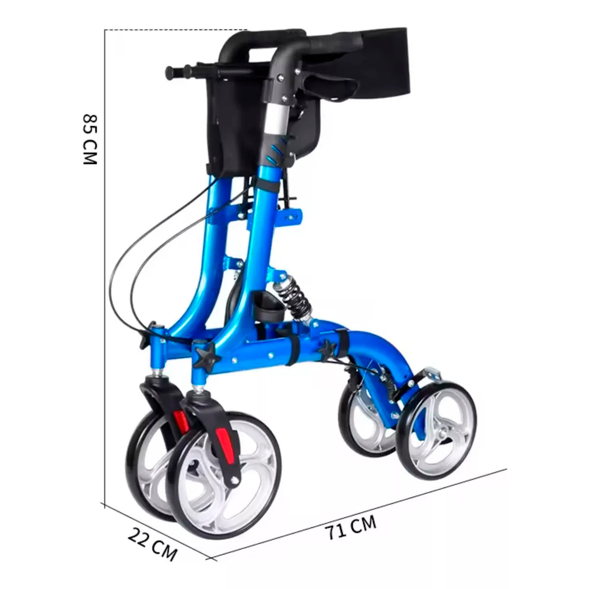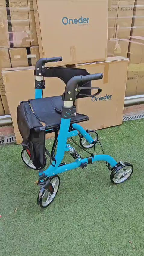El Andador 4 ruedas, plegable facilita el traslado de personas con movilidad reducida y adultos mayores. Además esta equipado con frenos manuales con empuñaduras anatómicas para mayor seguridad.