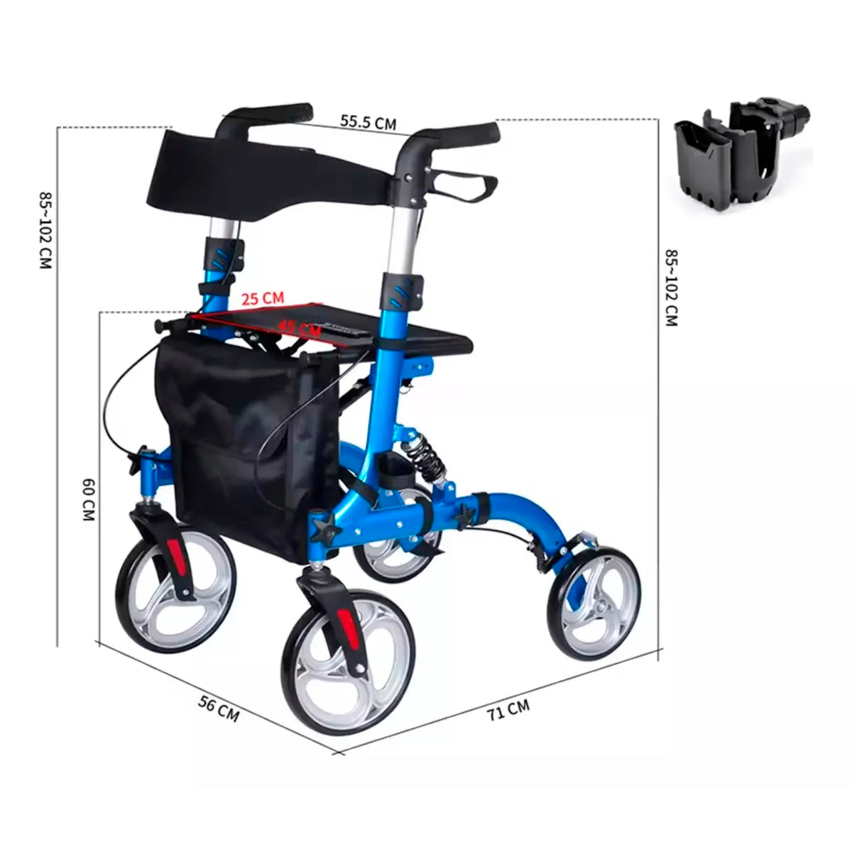 El agarre se puede bloquear tirando hacia abajo para mantener el andador estable. Asimismo incorpora un asiento de alta resistencia y un bolso desmontable. Nuestro producto es plegable lo cual permite un fácil traslado para la comodidad de cada persona.