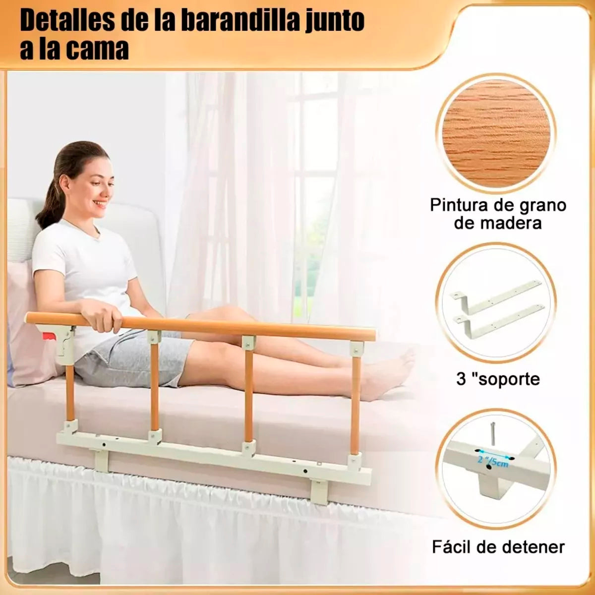 El pasamanos de la cama de 93 cm de largo y 35,5 cm de alto juega un papel protector y de apoyo, proporciona un agarre cómodo y seguro para entrar y salir de la cama de forma segura.