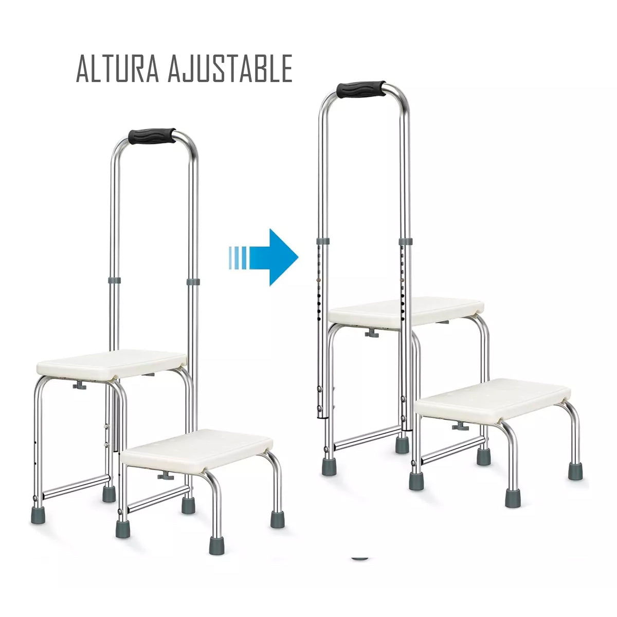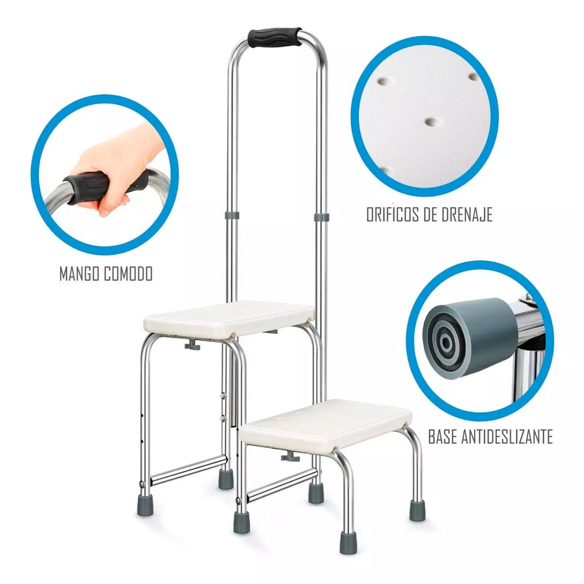 Escabel Piso Clinico 2 Peldaños Antideslizante Con Baranda 602B