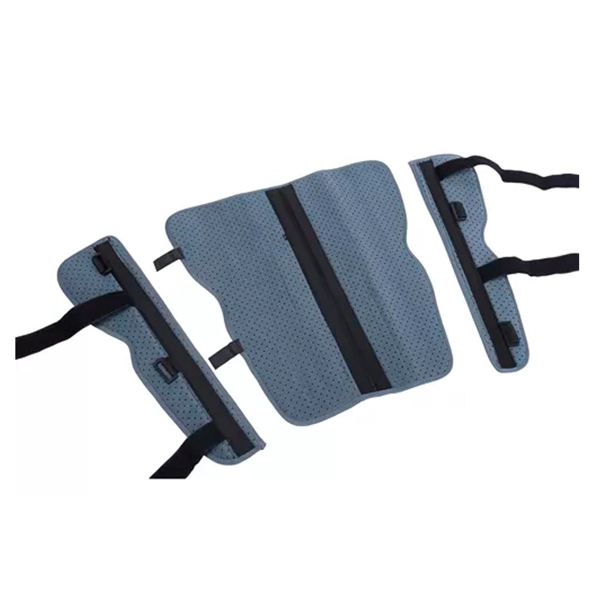 Ortesis inmovilizadora de rodilla de tres paneles tiene un diseño único que maximiza la comodidad y la eficacia para el usuario. Posee soportes que se encuentran doblados para simular la forma anatómica de la parte posterior de la pierna y la rodilla. Consta además con dos paneles laterales (uno a cada lado) que se sujetan con velcro al panel posterior. Estos paneles laterales se pueden ajustar para hacer que el inmovilizador sea más grande o más pequeño mientras se mantienen los soportes laterales correctamente colocados en los lados medial y lateral de la rodilla. Esta órtesis se utiliza para tratar lesiones de rodilla, principalmente en aquellas que involucran los ligamentos de la rodilla u otras lesiones graves en los tejidos blandos de la pierna.