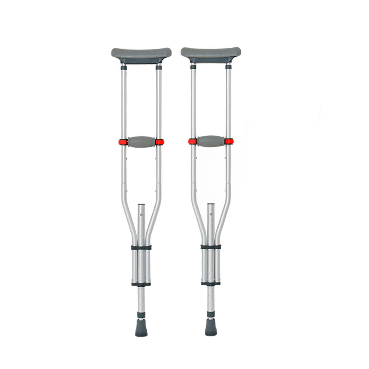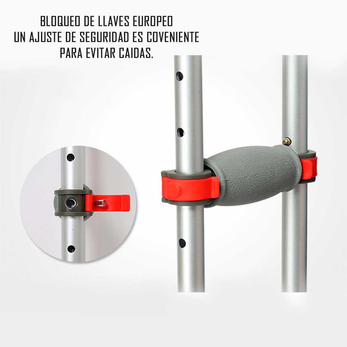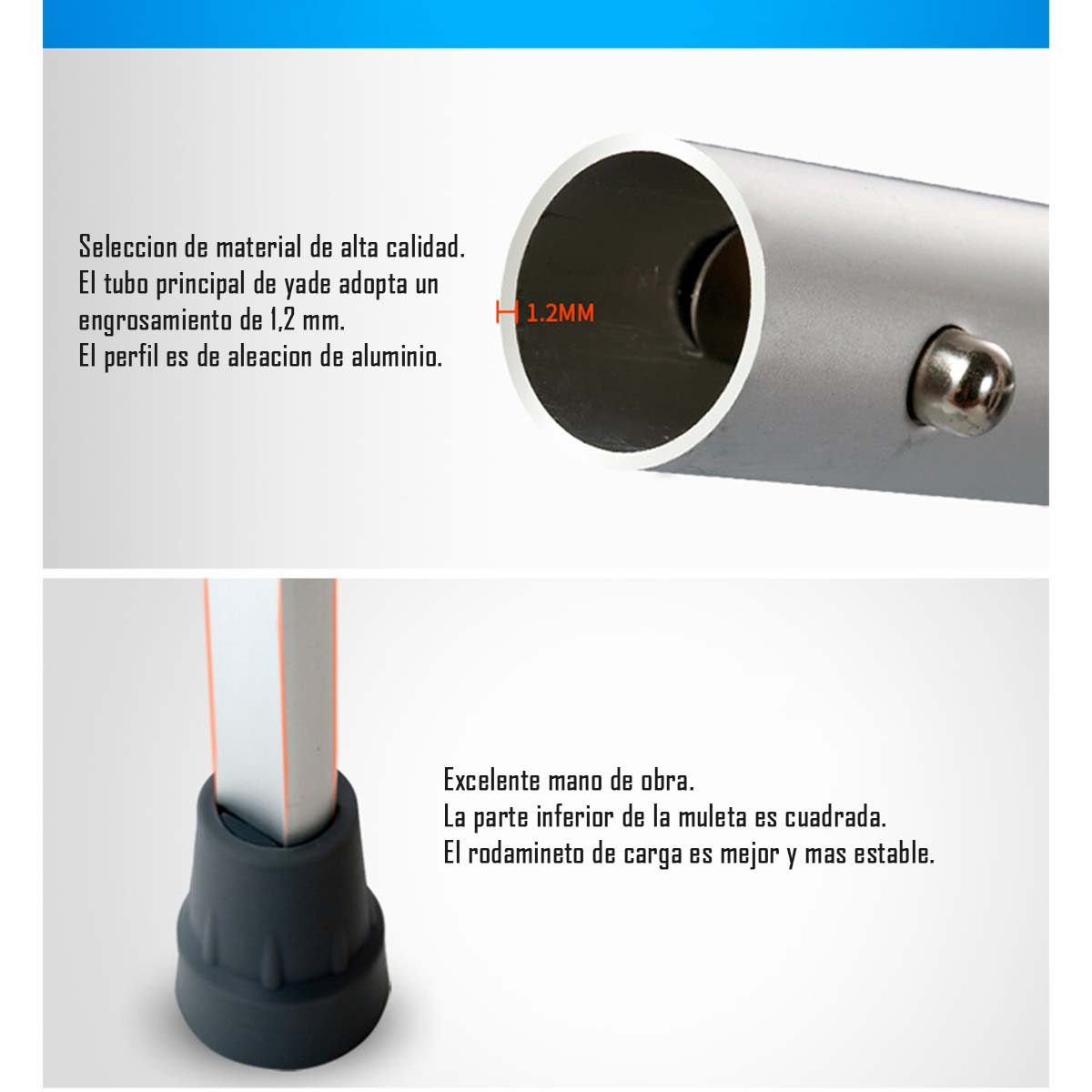 Mango de goma de microranura, almohadilla de goma suave en las axilas, almohadilla inferior para absorción de impactos antideslizante. Para garantizar la comodidad y la seguridad de los usuarios. Un par de muletas universales resistentes. El diseño de arco interior del tubo de aleación de aluminio de la pierna. Permite que las muletas ligeras soporten hasta 300 libras con facilidad.