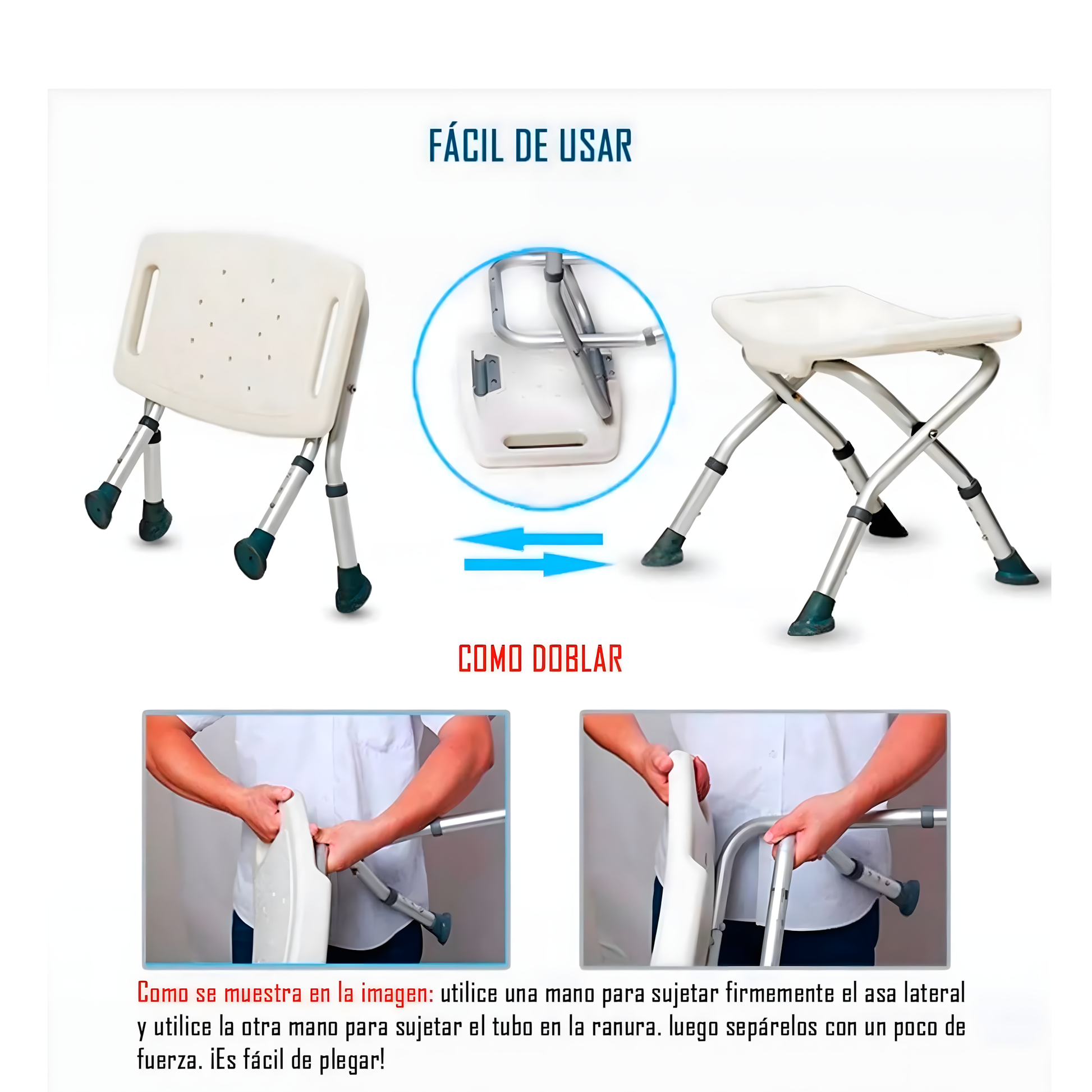 Plegable y ahorra espacio: Solo se puede plegar la silla con algunas operaciones simples, lo que permite la comodidad de almacenamiento y maximiza su precioso espacio de baño.