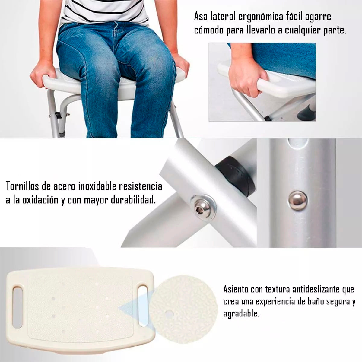 Este banco de ducha plegable cuenta con un marco de aleación de aluminio resistente al óxido, base ancha con superficie texturizada antideslizante, ajuste de altura sin herramientas, asiento cómodo, soporta hasta 300 libras aproximadamente, se adapta a personas mayores, discapacitados, mujeres embarazadas, personas con problemas de movilidad postoperatoria, les ayuda a sentarse y ducharse de forma segura con menos caídas mientras está en la bañera o la ducha, Crea una experiencia de Baño segura y agradable.