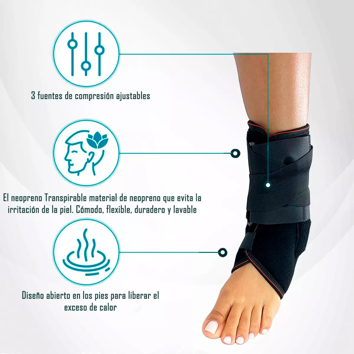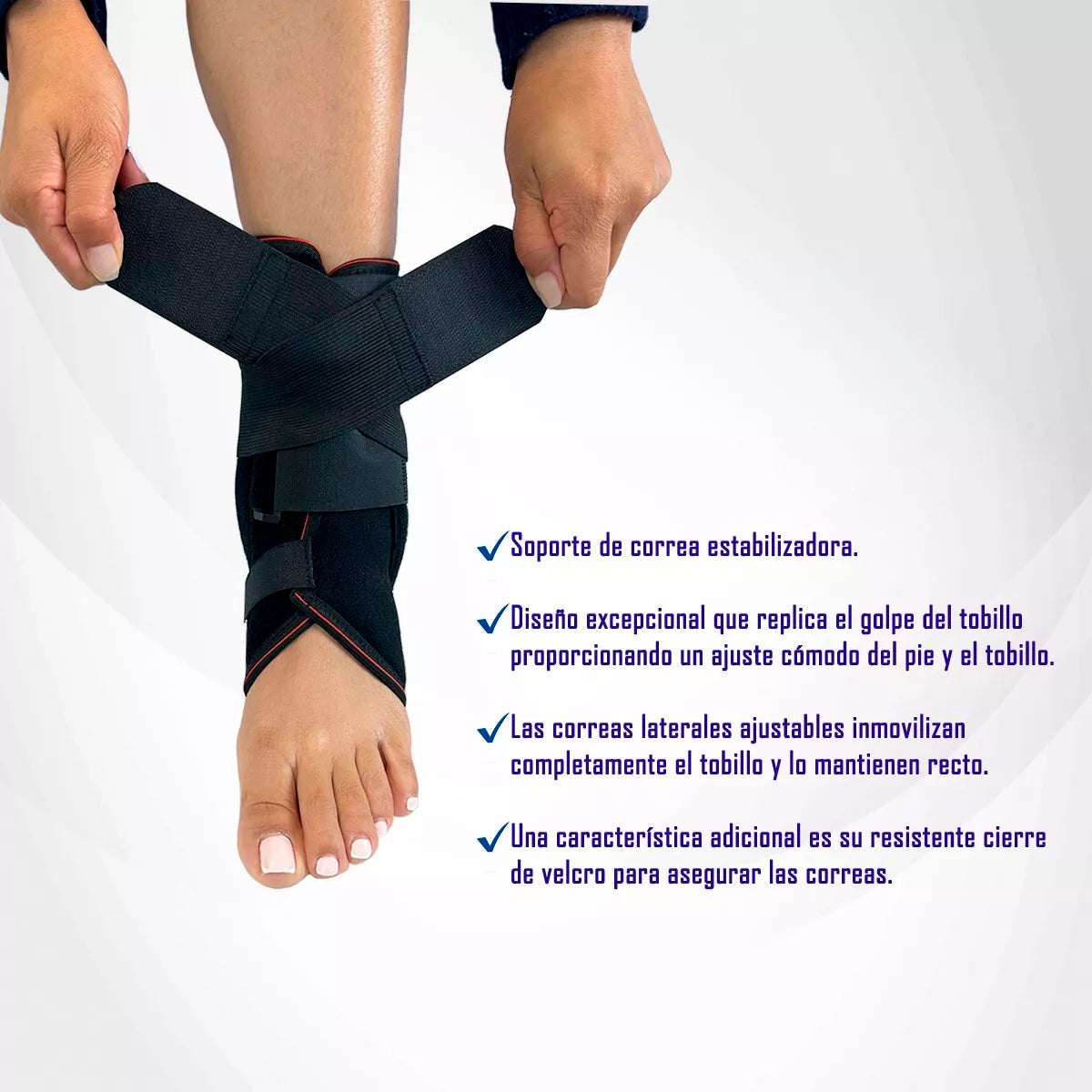 Tobillera Inmovilizadora Para Tobillo Con Cintas Ajustables. Estas tobilleras es adecuada para esguinces de tobillo, lesiones en el ligamento, o inestabilidad. Proporciona una protección contra impactos durante el movimiento. Puede limitar la actividad de tobillo, evita lesiones de tobillo, esguinces y torceduras, lesiones de tejidos blandos. Alivia la presión y fomenta la recuperación, que se ajusta unisex para los pies izquierdo y derecho.